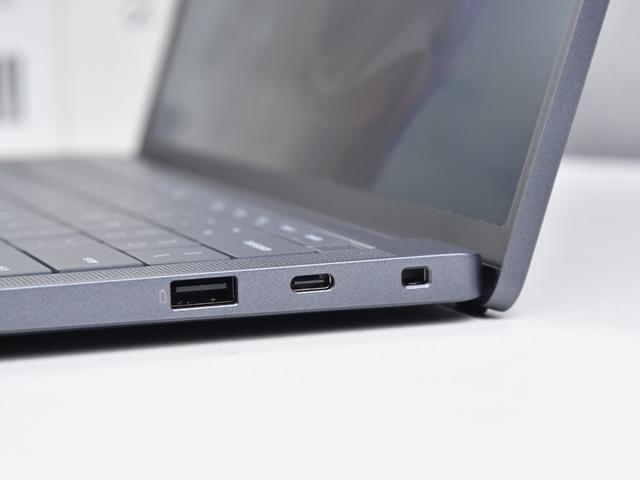 接口方面,戴尔Pro 14 Premium机身右侧配有1个USB 3.2 Gen1 TYPE-A和1个全功能雷电4接口,另外还配有安全锁孔。