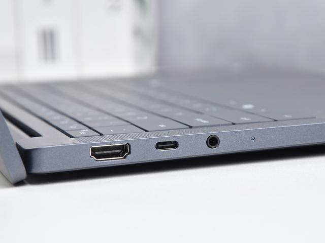 机身左侧配有1个标准的HDMI2.1视频端口,1个全功能雷电4接口和1个3.5mm耳麦插孔,机器整体的扩展性能够满足日常应用需求。