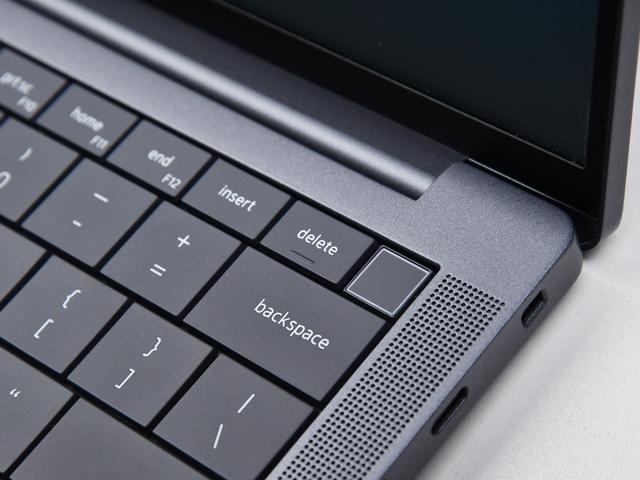 戴尔Pro 14 Premium键盘区域右上角集成了指纹+电源二合一按键,提升了指纹识别器的利用率。