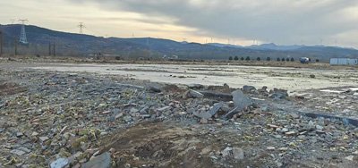 记者日前到达该村,看到紧邻浊漳河与旅游公路的大片土地一片荒芜。大量耕地地面已被水泥硬化,玻璃碴、碎砖头、黑色塑料壳、白色泡沫塑料、鹅卵石等建筑垃圾随处可见(见图①)。还有的地块上,锅炉房、仓库板房等建筑物仍未拆除。