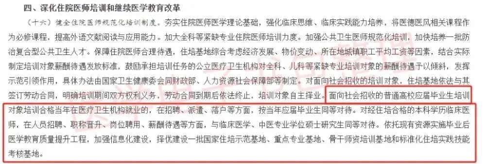 就业平等:住培合格的本科学历医师在招聘、落户、派遣中按应届硕士待遇执行;