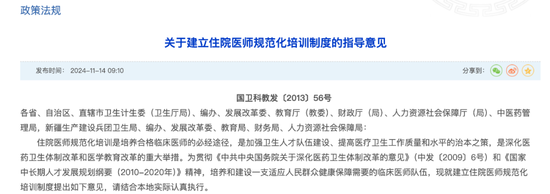 国家卫健委联合多部门发布《关于贯彻落实住院医师规范化培训“两个同等对待”政策的通知》,明确: