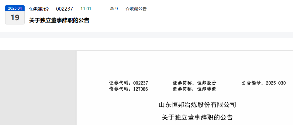 山东恒邦冶炼股份有限公司(以下简称“公司”)董事会于近日收到独立董事王咏梅女士的书面辞职报告,王咏梅女士因工作繁忙申请辞去公司第九届董事会独立董事、董事会审计委员会主任委员、董事会薪酬与考核委员会委员职务。王咏梅女士辞职后将不在公司及控股子公司担任任何职务。