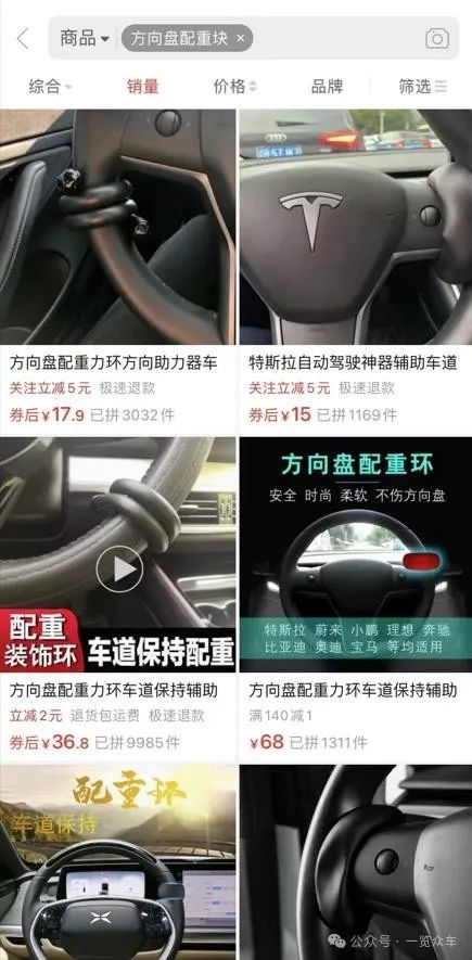 在部分购物平台,以“方向盘配重块”、“驾驶辅助神器”等为关键词,会找到众多商家的销售页面。这类产品适配的车型范围广泛,几乎覆盖了当前市场的主流车型。然而,令人难以置信的是,这些被称作“畸形产物”的商品在网上销量却十分可观,部分商家甚至销售出近万件。这一销售成绩进一步诱导了更多消费者购买,长此以往,道路安全指数必然大幅下降,称其为“马路杀手”也毫不夸张。