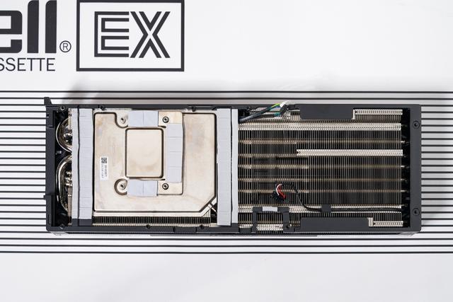 而让显卡质感更上一层楼的设计,是围绕中间风扇进行中心对称布局的金色装饰件,这两块装饰件为金属磨砂质感,其上加入批花工艺造就的纹路,就如点睛之笔,使得显卡有了轻奢的风格。