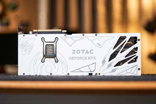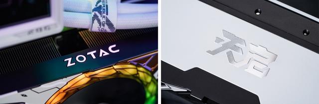 显卡的侧面和尾部都使用了全包围设计,侧面的“ZOTAC”品牌LOGO信仰灯,简约而内敛,且与正面的“启世之环”相呼应,两者均可以通过OPENARGB幻光同步接口来实现与主板同步。尾部还有一块制作成“天启”二字形状的金属铭牌。