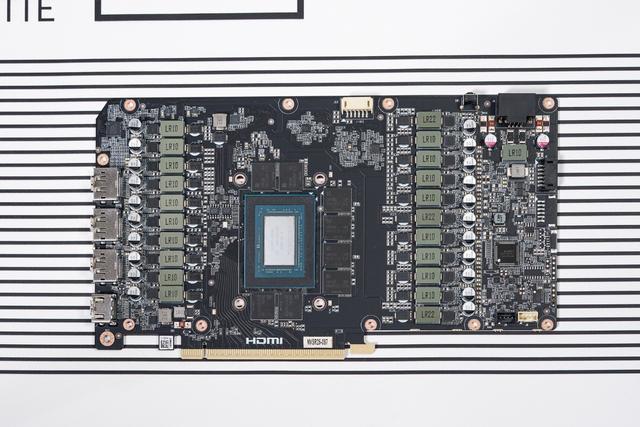 视频输出接口为3个DP2.1b接口和1个HDMI2.1b接口配置,前者可以支持UHBR20连接,峰值传输带宽可达80Gbps,能够在无DSC的情况下支持4K@240Hz画面输出;后者则支持8K@60Hz输出和可变刷新率功能。