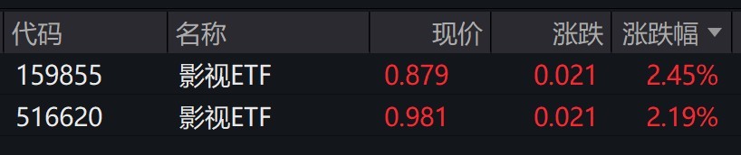 受盘面影响,跟踪中证影视主题指数的影视ETF涨超2%。