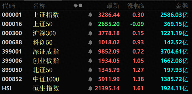 北证50、中证1000等盘中均涨逾1%,上证指数、沪深300、上证50等纷纷创出阶段性新高。超4000只个股上涨,成交保持平稳。