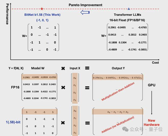 之后,微软原班人马在上一篇论文的基础之上做了优化,提出BitNet b1.58,在原始BitNet的基础上增加了一个额外的0值