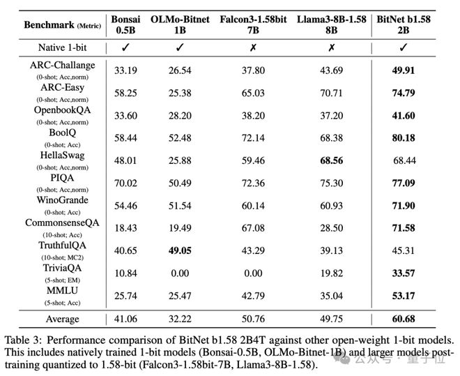 参数更大的Llama3-8B模型量化至1bit后,也难打BitNet b1.58 2B4T。