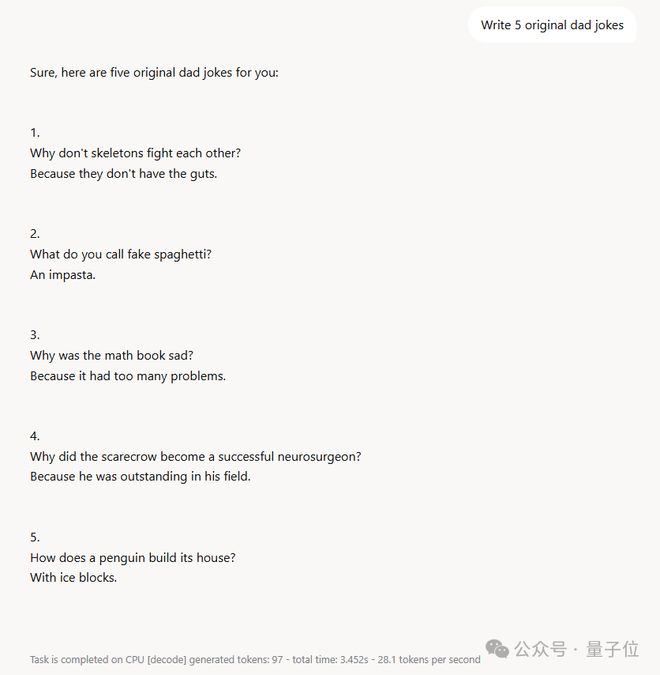 让它生成几个笑话,笑话简短但也蛮有意思: