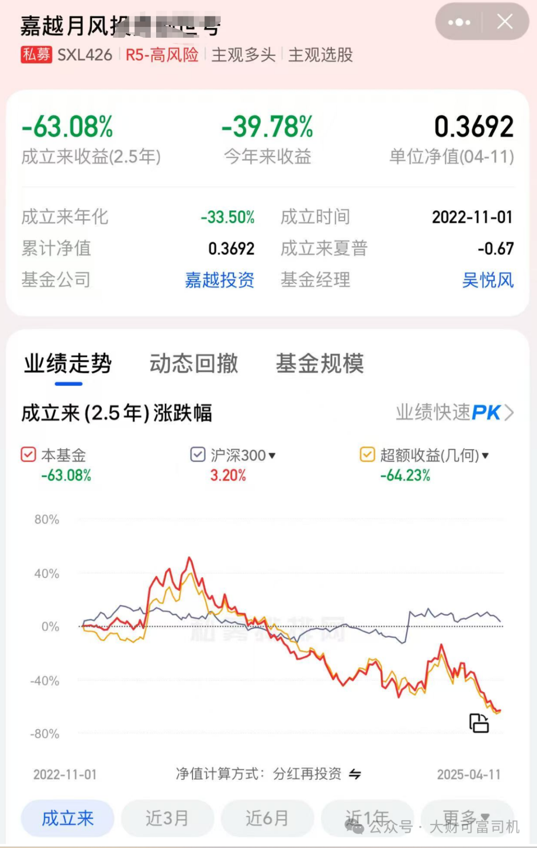 之前在险资工作的网红基金经理吴悦风,加盟嘉越投资后,管理的产品最新净值0.3692。