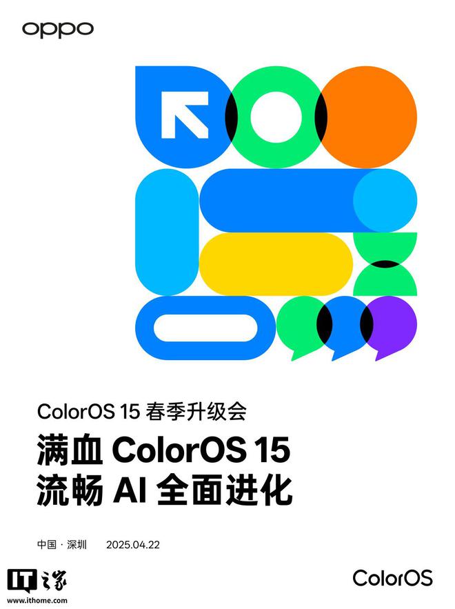 IT之家 4 月 21 日消息,OPPO 官方宣布,将于 4 月 22 日举办 ColorOS 15 春季升级会,届时将带来“满血 ColorOS 15 系统,流畅 AI 全面进化”。值得一提的是,一加 13T 将首发搭载该满血 ColorOS 15 系统,该机将于 4 月 24 日发布。