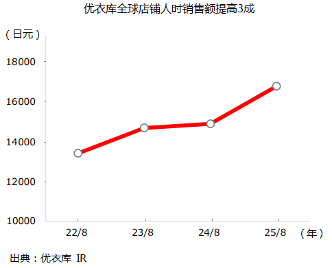 2024年以来,优衣库本土市场销售业绩增长明显,有媒体分析应归功于员工加薪政策。2025年3月,优衣库从2023年新近调整过的30万日元(约人民币1.5万元)加到33万日元(约人民币1.7万元),超过部分银行水平,意欲在全球水平上强化品牌竞争力和员工成长力。通过再加薪,快速形成促进业绩增长、激励员工向上的良性循环,成为2025年毕业生抢先选择的企业之一。