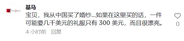 有人说自己从中国买了婚纱,省了数千美元,而且很漂亮。