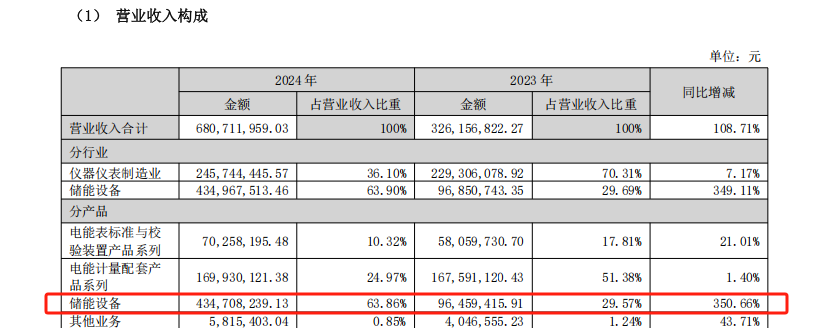 从产品来看,三晖电气的储能业务增长突出,2024年储能设备营业收入4.35亿元,同比暴涨350.66%,占总营收比重的63.86%,是三晖电气营收最高的业务。其储能设备的毛利率15.68%,同比上涨超10%。
