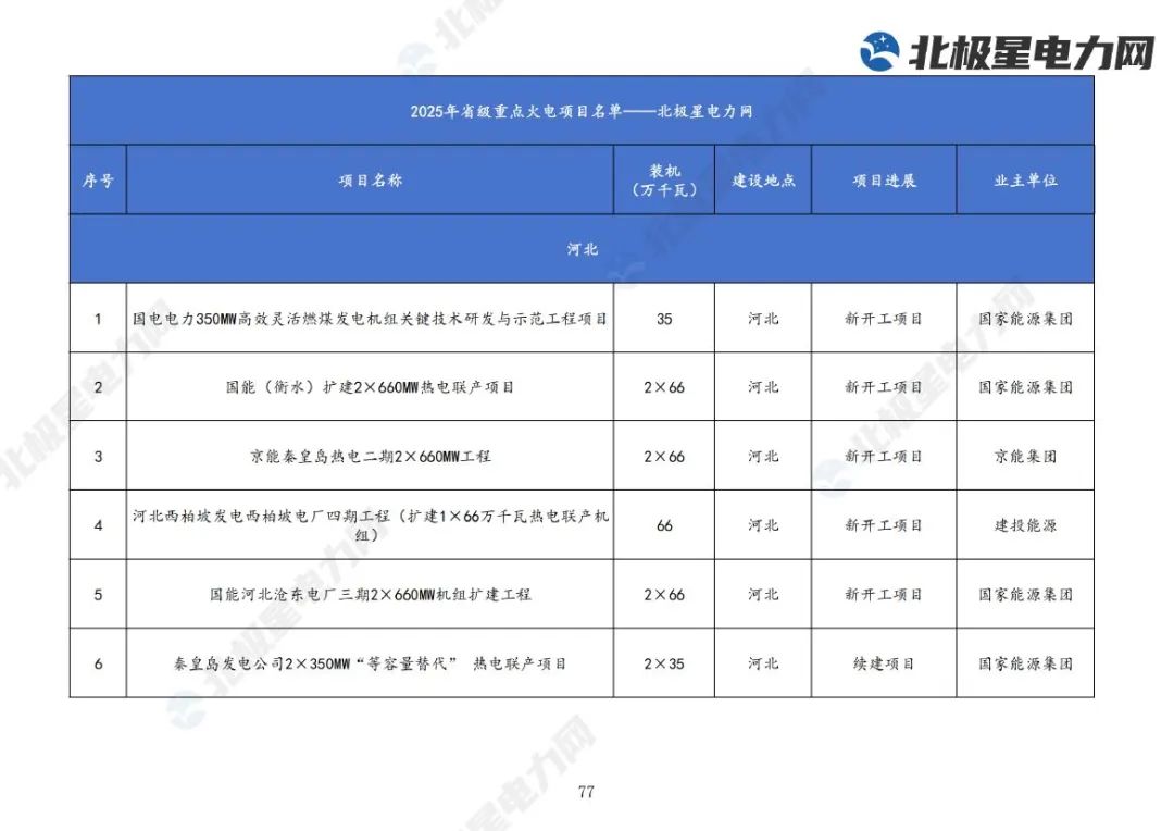 目前已有北京、河北、江苏、山东等14省份发布2025年省级重点项目名单,其中共计105个重点火电项目,包括煤电、天然气发电等。