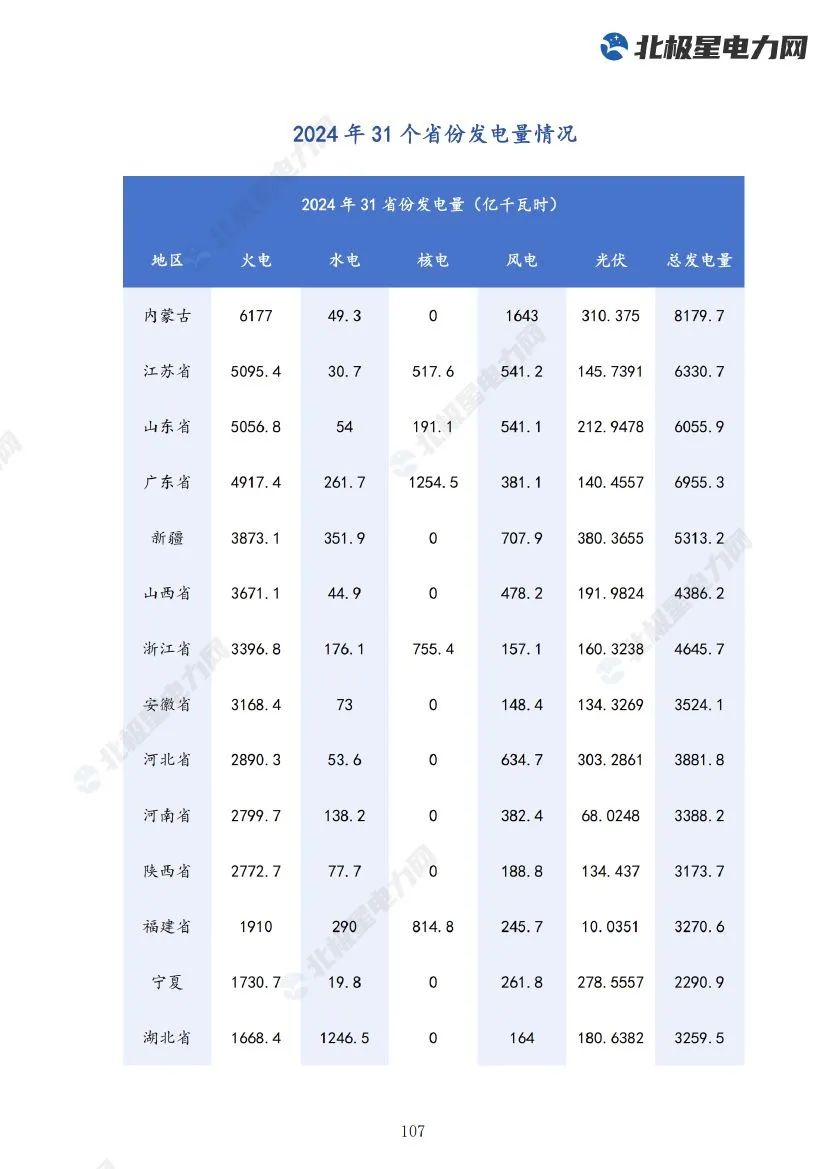 分地区来看,2024年,江苏省火电发电量超越山东省,排到全国第二。2024年,全国火电发电量TOP5分别是: