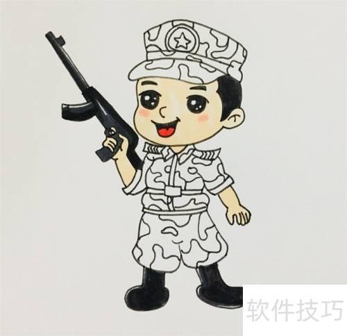 4、 接着,将特种兵下半身补全,为其帽子和衣服添加迷彩图案。