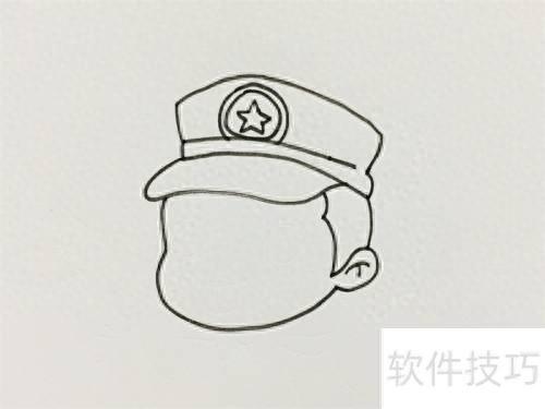 1、 先绘制特种兵帽子,加上帽徽,接着勾勒脸部轮廓,画出侧面耳朵。