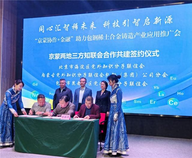 记者从4月21日在北京市举办的“同心汇智稀未来 科技引智启新源——‘京蒙协作+金融’助力包钢稀土合金铸造产业应用推广会”上了解到,为助推京蒙协作走深走实,强化两地区域合作,积极落实“科技兴蒙”战略,北京市海淀区、内蒙古包钢集团及包头昆都仑区两地党外知识分子联谊会(简称“知联会”)签署“两地三会”合作共建协议,并揭牌成立“知联同心驿站”和“内蒙古党外知识分子联谊会包钢(集团)公司分会北京工作室”。