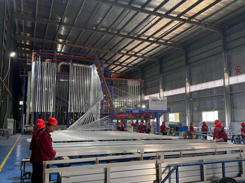 喷塑车间是中易铝业产品表面处理的重要环节。在这里,铝型材进行时效处理后,会进行喷塑处理,使其具有更好的外观和性能。