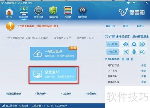 9、 提升病毒查杀效率的关键在于合理设置杀毒软件。以下以金山毒霸为例,介绍设置方法(其他软件类似)。