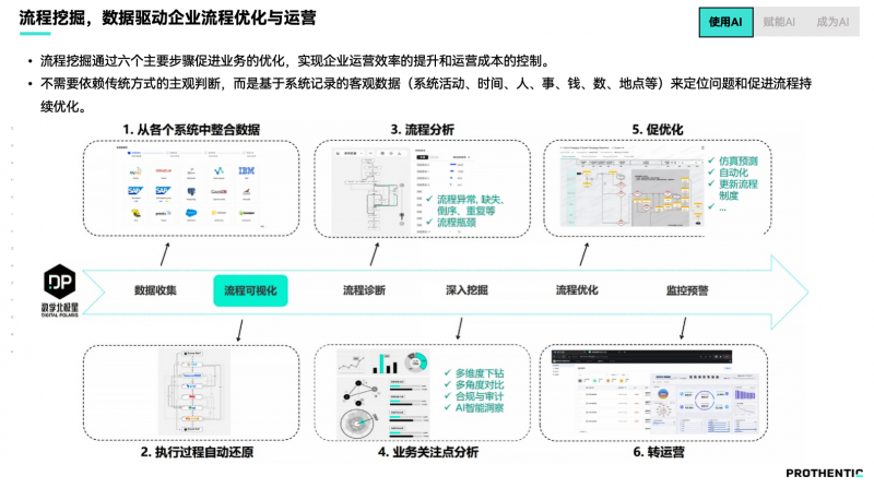 流程识别阶段:AI辅助发现流程路径与关键异常,提升识别效率;