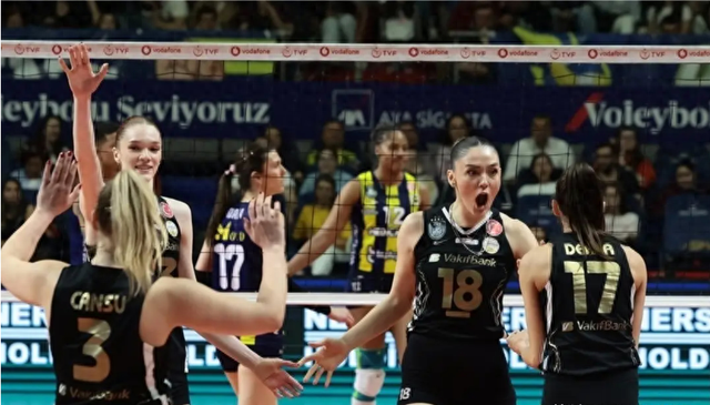 比赛开场,费内巴切女排率先发力,以 25:22 先下一城,就像一阵迅猛的疾风,给瓦基弗银行女排来了个下马威。但瓦基弗银行女排并未因此而慌乱,她们迅速调整战术,好似重新校准罗盘的船只,找准方向。在接下来的三局比赛中,她们如同苏醒的雄狮,展现出强大的统治力,分别以 25:20、25:19 和 25:23 连扳三局,成功实现逆转,以 3:1 的比分赢得比赛胜利,在总比分上 2:0 领先,距离冠军奖杯仅一步之遥,仿佛已经触摸到了胜利的曙光。