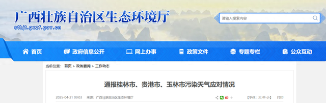 广西壮族自治区生态环境厅官网21日通报桂林市、贵港市、玉林市污染天气应对情况。通报指出,4月4日-9日,桂林市、贵港市、玉林市因山火和露天焚烧管控落实不力,污染天气响应不及时,部门联动及区域联防不足,导致共发生7城次污染天气。