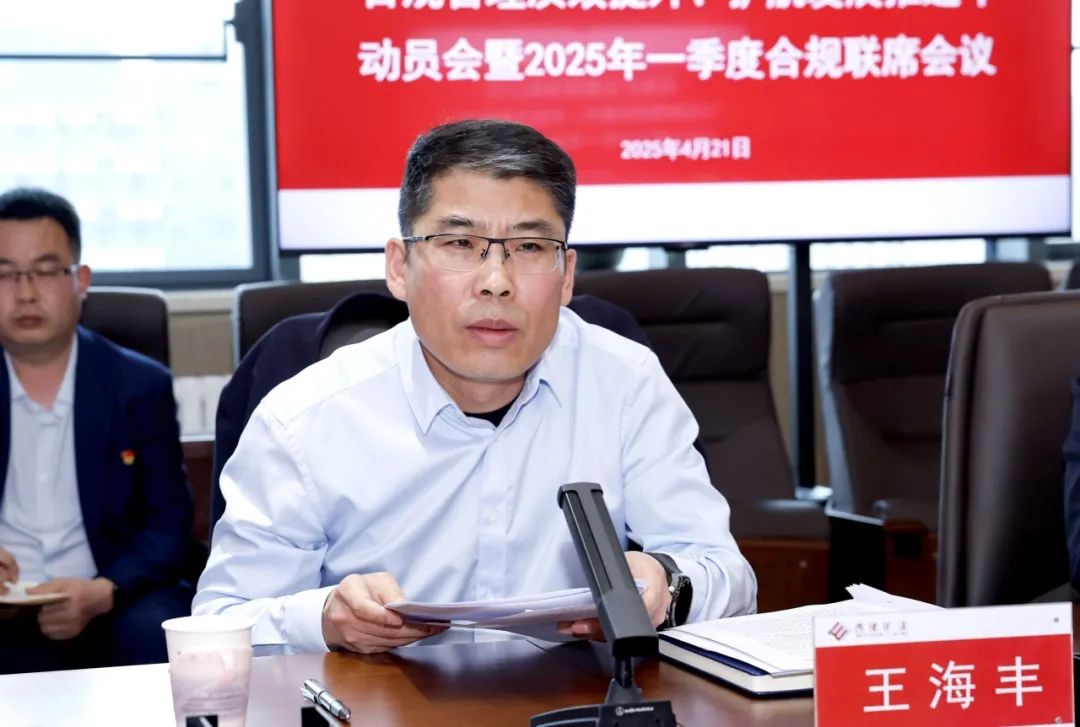 宣传部讯 4月21日,集团公司召开“合规管理质效提升、护航发展推进年”动员会暨2025年一季度合规联席会议,贯彻落实公司“两会”精神,总结2024年度法律合规工作落实情况,总结分析一季度法律合规工作堵点、难点,安排下一阶段工作,进一步提升公司整体风险防控能力,推动公司合法合规管理工作走深走实。集团公司党委副书记、总裁、合规管理委员会副主任王海丰讲话,集团公司党委委员、纪委书记、监察专员李斌主持。