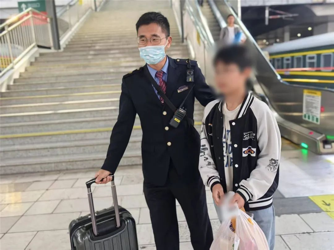张建斌一路护送男孩到站台,与列车长办好交接后,目送男孩上了车。而后张建斌拨打了男孩妈妈的电话,告之孩子已安全上车,请他们在宣威站耐心等候。