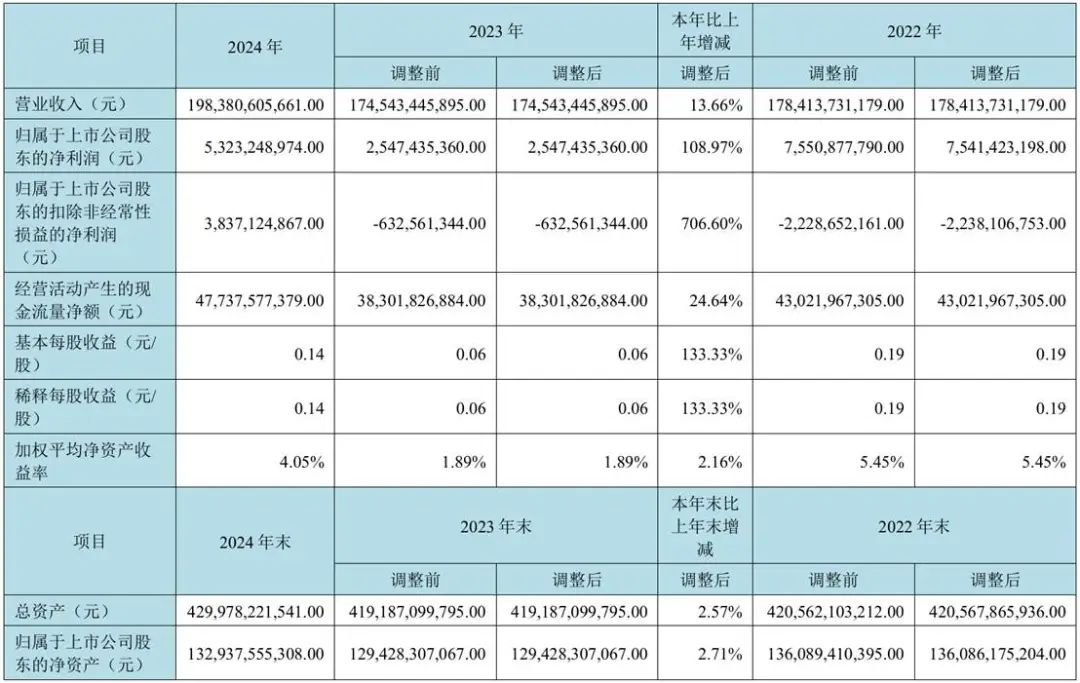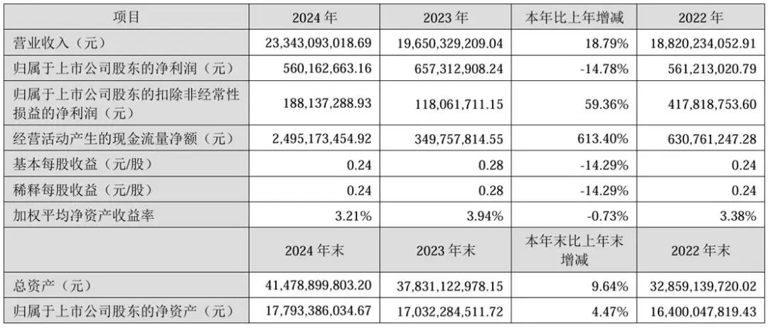 金发科技(600143.SH)发布2024年年度报告,公司实现营业收入605.14亿元,同比增长26.23%;归属于上市公司股东的净利润为8.25亿元,同比增长160.36%。