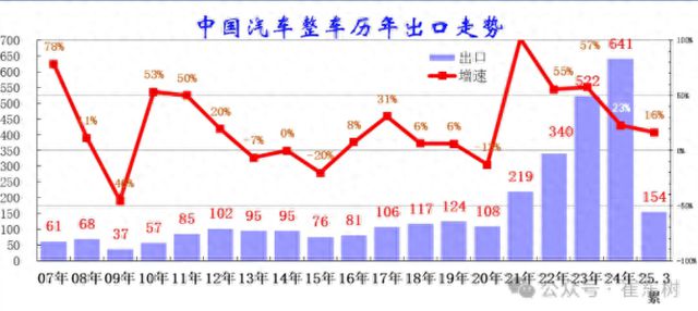 【环球网科技综合报道】4月22日消息,乘联分会秘书长崔东树发布的最新数据显示,2025年1-3月中国汽车出口总量达154万辆,同比增长16%,其中3月单月出口量达57万辆,同比增长16%,延续了自2024年以来的强劲增长态势。崔东树指出,这一增长主要得益于中国汽车产品竞争力的持续提升,以及全球南方国家市场的需求拉动。