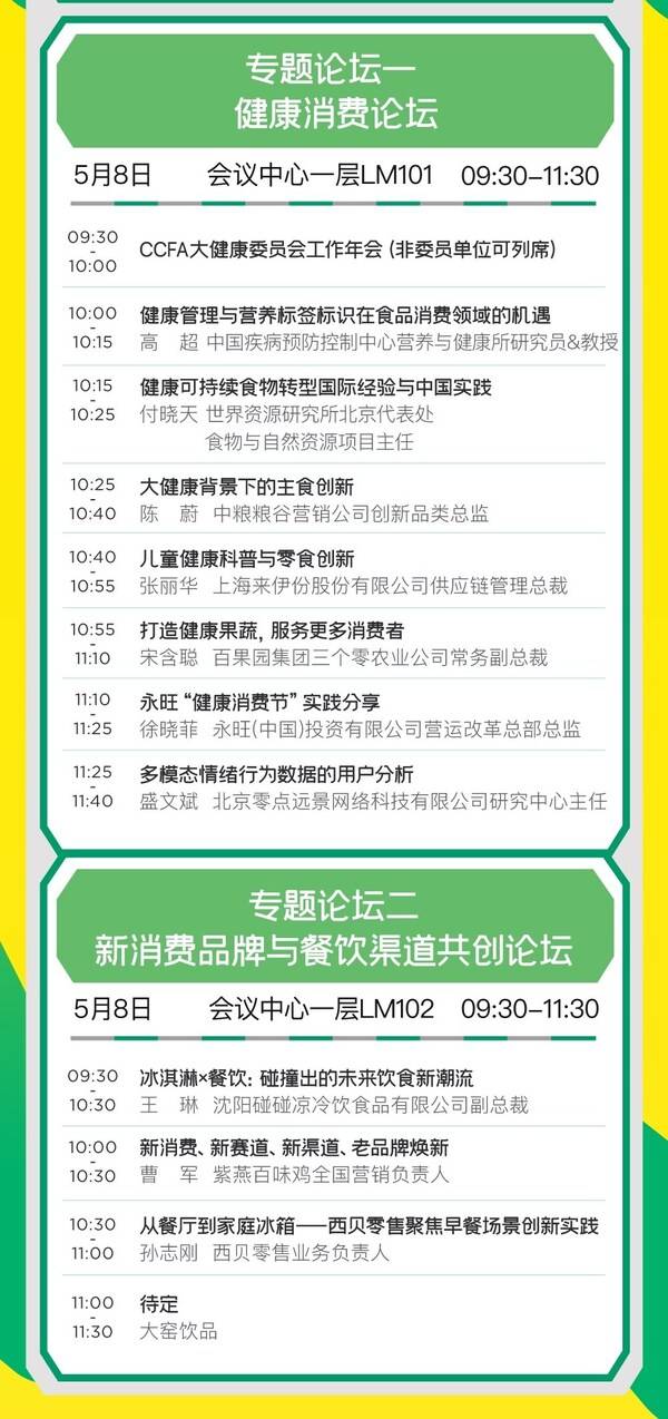 已有30余位消费、零售领域重要嘉宾确认到会分享:包括伊利集团副总裁马飞、丘比副总经理金家正、卫龙新兴渠道发展部总经理舒勇、贝泰妮零售事业部副总经理詹伟、越秀乳业集团品牌中心资深总监姚莉、喜茶快消业务渠道营销负责人刘茜、MetaVita麦多维多CEO粟睿、来伊份供应链管理总裁张丽华、百果园三个零农业常务副总裁宋含聪、中粮粮谷营销公司创新品类总监陈蔚、周六福珠宝董事总经理谢明育等头部消费品牌高层。
