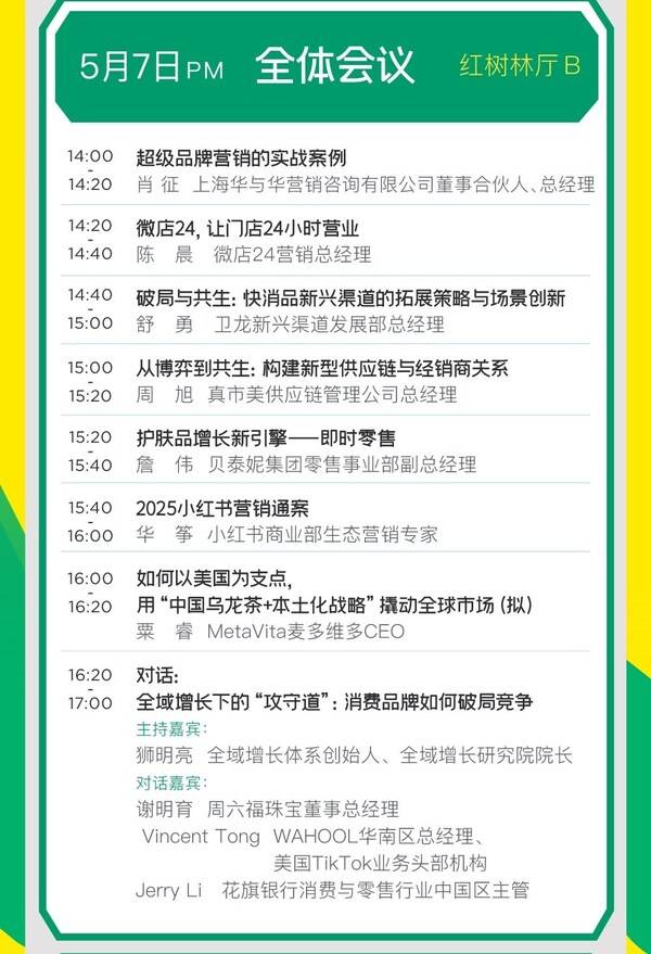 当AI大模型开始预测爆款、柔性供应链实现"万单千面"、DTC品牌用数据反向定制生产线,技术革命正在撕裂消费与零售的传统边界,头部品牌如何打破增长瓶颈进行技术赋能+生态重构?当一边是奢侈品逆势涨价仍被疯抢,一边是平价品牌陷入价格内卷,消费两级分化时代,高端破圈、去低价化、全渠道化,谁会是唯一优先路径?以及"跨境+免税+供应链"黄金三角如何打造差异化壁垒?宠物赛道如何突破同质化竞争?智能化、情感化趋势背后的商业逻辑是什么?"线下体验护城河"与"线上内容种草"如何协同?零供关系面临从"互相博弈"到"生死与共"的关系重构之时,品牌与供应商如何用数据共享实现"零猜疑协同"?以及如何打造从博弈到共赢的范式革新?……本届消费品渠道营销创新峰会将围绕这些热门话题逐个展开重点探讨。