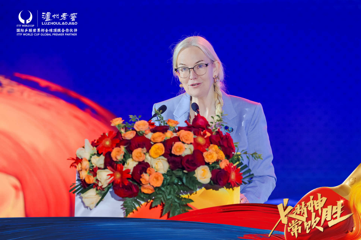 启幕仪式上,国际乒联主席、国际奥委会委员佩特拉•索林在致辞中表示,“本次赛事将乒乓球推向前所未有的水平,也为我们的体育创新设定一个开创性的标准,国际乒联与泸州老窖的合作有望将这项赛事提升至新的高度。除此之外,我们也很高兴看到泸州老窖在与国际乒联世界杯合作的基础上,在2024年创立了泸州老窖乒乓球城市挑战赛并在今年继续发展,为更多乒乓球爱好者提供交流互动的平台,为乒乓球运动的长足发展贡献了力量。”