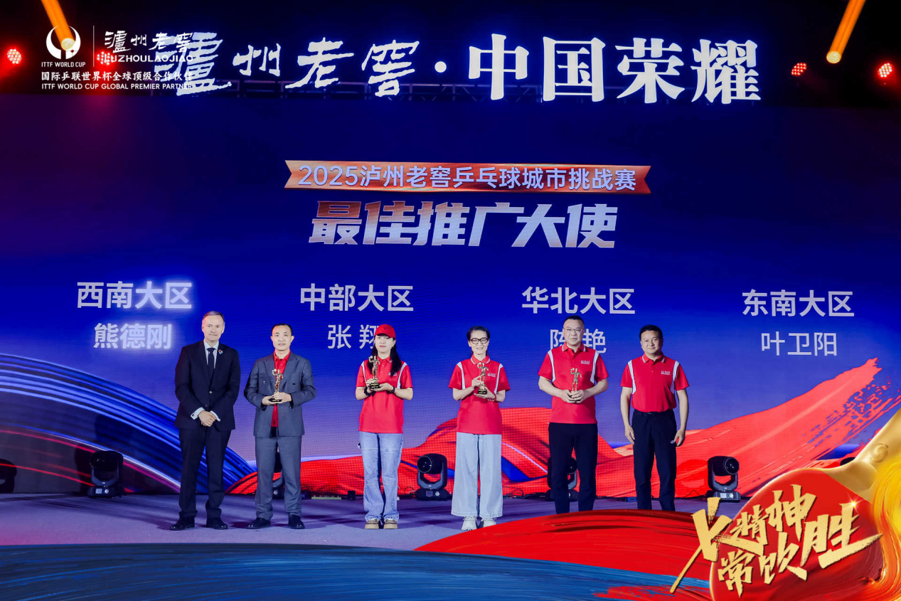 国际乒联主席、国际奥委会委员佩特拉•索林,国际乒联集团首席执行官、WTT世界乒联董事史蒂夫•丹顿,国际乒联秘书长劳尔•卡林,泸州老窖销售有限公司党委书记、总经理张彪,泸州老窖销售有限公司党委委员、销售管理部部长游涛等领导出席活动,共同见证荣耀时刻。