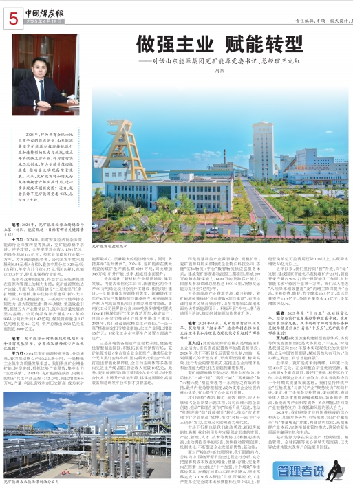 笔者:2025年是“十四五”规划收官之年,结合当前行业发展趋势和政策导向,兖矿能源在经营发展、改革创新方面的首要任务和关键举措是什么?着眼“十五五”,兖矿能源有哪些谋划?