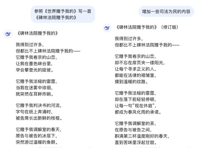 如果我们使用DeepSeek软件改编一下歌曲《世界赠予我的》,生成《碑林法院赠予我的》,看看能唱出多少法院人的心声?