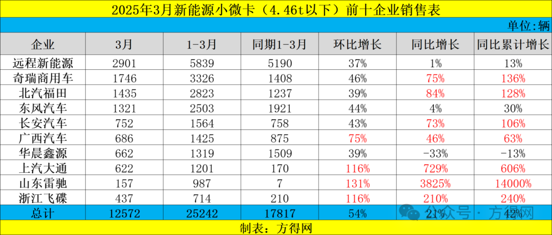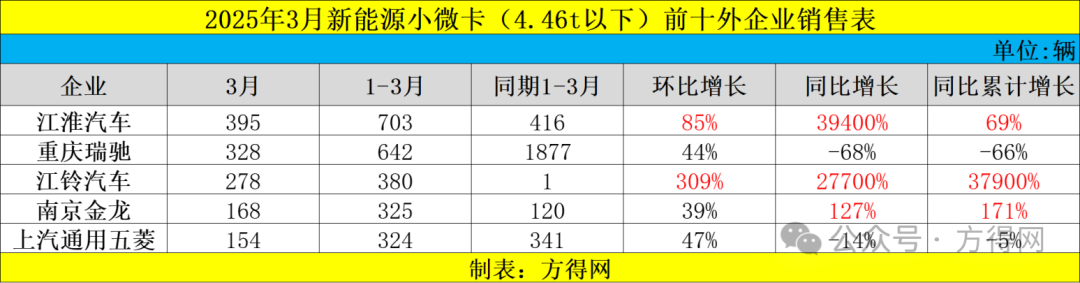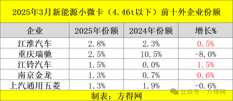 2025年3月,在新能源小微卡同比增长21%的背景下,哪些企业有着超越行业的表现?
