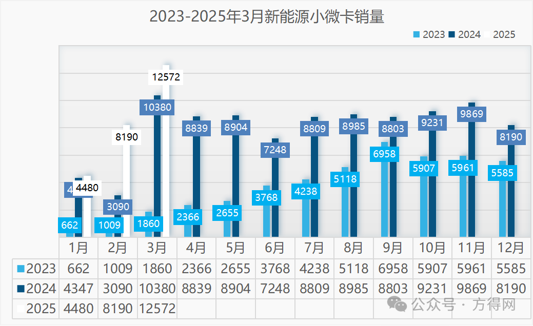 3月新能源小微卡冲破1万辆!一季度完成2.5万辆增长42%。