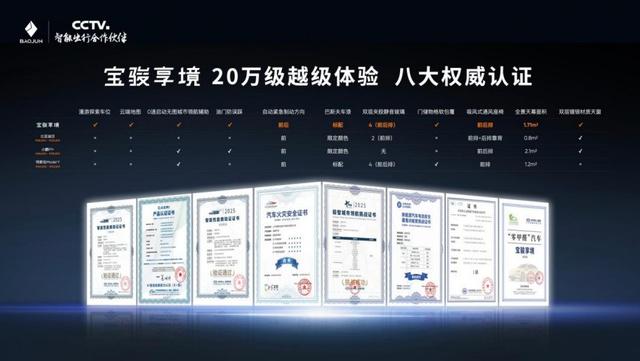 宝骏享境以四大越级实力,实现 20 万级越级体验。品质越级,全系标配国际顶尖巴斯夫车漆,搭载同级唯一四座吸风式通风座椅、同级唯一四门双层夹胶静音玻璃、同级最大 1.71 ㎡双层镀银隔热观景天幕等;智能越级,搭载 0速启动无图城市领航辅助、AEB(自动紧急制动),智能泊车辅助支持“漫游探索车位”与“云端地图”;驾控越级,补能快、续航真、不挑桩,底盘滤震舒适性同级第一;安全越级,搭载神炼电池,守护 300 万用户的电池安全。宝骏享境越级实力斩获中国汽研、中汽中心八大权威认证,涵盖安全、智能、能效等核心产品力,以硬核实力成为 C 级大家轿里的全能选手、用户的智能出行好伙伴。