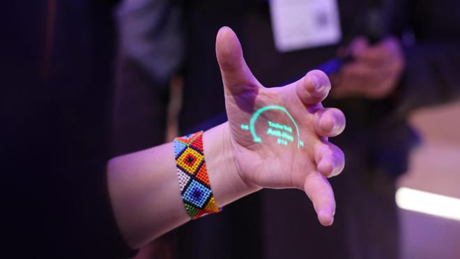 AI Pin 的核心理念是“环境计算”(Ambient Computing),即让计算无处不在,却又“隐形”。通过语音、手势和激光投影交互,用户可以发信息、查资料、播放音乐,甚至实时翻译。