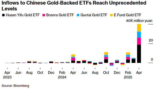 除了期货投机活动,投资者还在囤积其他类型的黄金。本月流入本地黄金ETF的资金已经超过了去年的增持总额。在这股热潮中,沪金相对于全球的溢价已扩大到创纪录的水平。