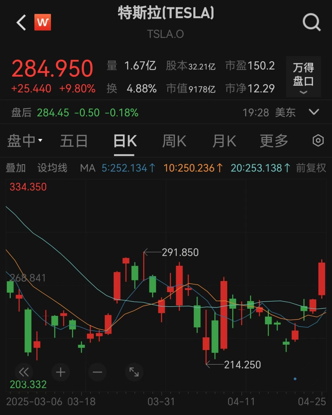 特斯拉周五大涨9.8%,总市值达9178亿美元。