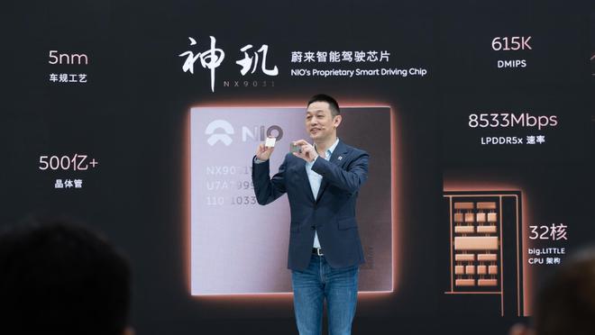 在发布会上,李斌介绍了蔚来自研的智驾芯片“神玑NX9031”,这也吸引了海外观众的目光,在发布会后纷纷前往展台观看。