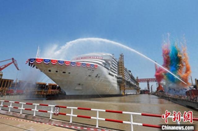 4月28日,中国第二艘国产大型邮轮“爱达·花城号”(H1509)在中国船舶集团有限公司旗下上海外高桥造船有限公司顺利实现坞内起浮。 中新社记者 殷立勤 摄
