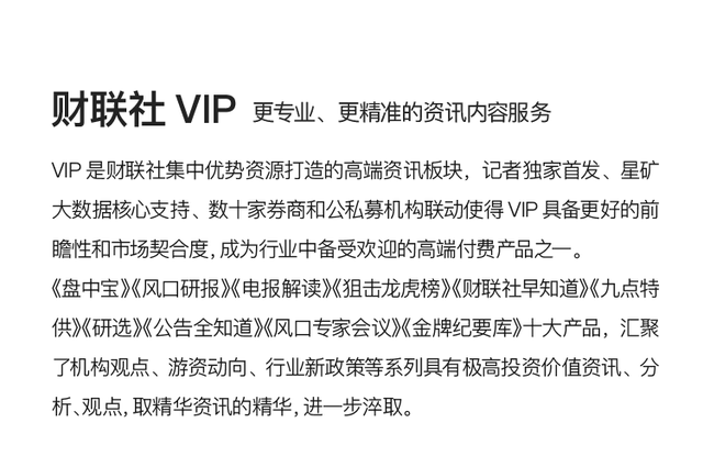 注:财联社VIP为内容资讯产品,并非投资建议。以下内容仅为资讯价值展示非对相关公司的推荐建议,非未来走势预测。投资有风险,入市需谨慎。